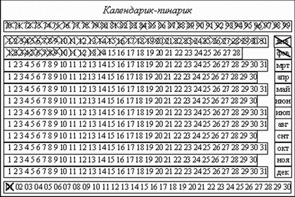 Заведя пинарик, вы берете карандаш и с толком, с чувством, с расстановкой, один за другим вычеркиваете прожитые годы. Можно - с лирическими воспоминаниями. Затем таким же манером вычеркиваете прожитые дни и месяцы текущего года. Пинарик готов к употреблению.